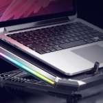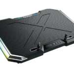 本体外寸は約410×約270×厚さ約34mmで、重さは約1020g。対応するノートPCのサイズは12~14インチとなります。両サイドに配置されたRGBライトが、本体とノートPCを美しく彩ってくれます。