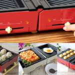 本体にフタ、グリルプレート×2、フラットプレート×1、たこやきプレート×1、そしてメインディッシュからスーツまで、3種のプレートを活用した30種類の料理が楽しめるレシピブック付き。