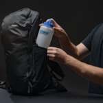 内部のスリーブには、ハイドレーションパックを収納できるほか、外側にはふたつのボトルポケットも付属。長時間の山歩きでも水分をしっかり確保できます。