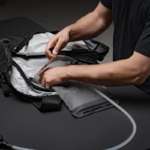 パック自体を小さく折り畳んで、付属のトラベルサックで持ち運べるので、旅先でちょっとしたハイキングやサイクリングをする時や、お土産などの荷物が増えてしまった時に重宝するはず。