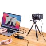 デジカメやビデオカメラに搭載されたオートフォーカスや露出調整を使えばPC搭載のカメラよりも明るくキレイな映像でコミュニケーションできるし、ズームやチルト、パン機能なども自由自在。写したい対象にすぐカメラを向けることができるから、発言中のメンバーやホワイトボード、試作中のサンプルなど、見せたいモノの映像をスムーズに相手に届けられます。これならオンラインでも質の高い会議が行えそう!