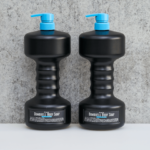 「ダンベルボディソープ」は、1200ml入りのボディソープボトルで、1本あたり約1.2kgのダンベルとして使えます。中身はボディソープなので、お風呂においておけば1本で2役。トレーニング器具のように場所も取りません。