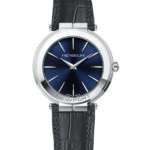 「NEWPORT SLIM QUARTZ」(7万7000円)はさらに薄くコンパクトな40mm・5.85mm厚のケースにスイス・ロンダ社製ムーブメントを搭載したクォーツタイプ。いずれも濃紺のダイヤルに配した細身のインデックスがシャープな印象を引き立てる、都会的なタイムピースです。