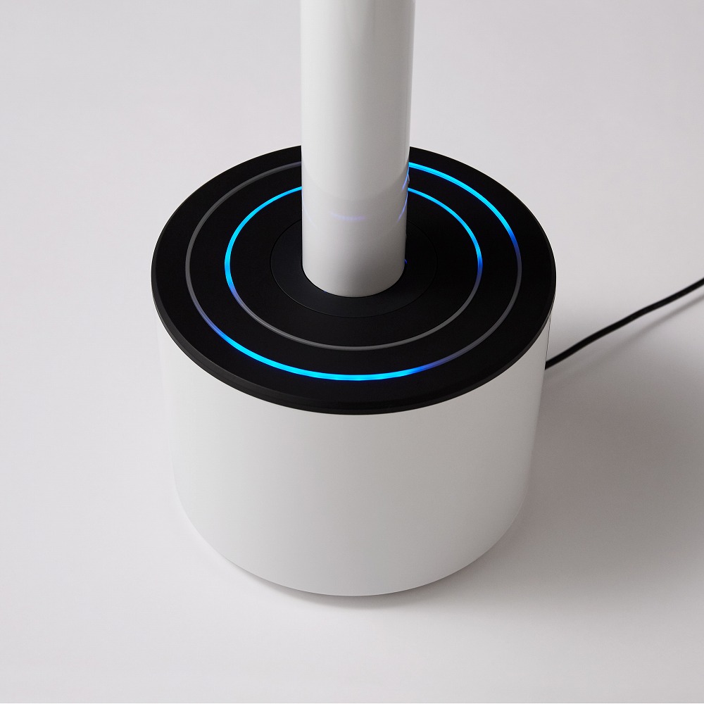 この多彩な首振りと送風モードを直感的に操作できるのが、台座上部にあるふたつの輪=ダブルセンサーリングになる。内側のリングはON/OFFと風量調節、外側のリングは首振り範囲の設定だ。プッシュとスライドで操作する。