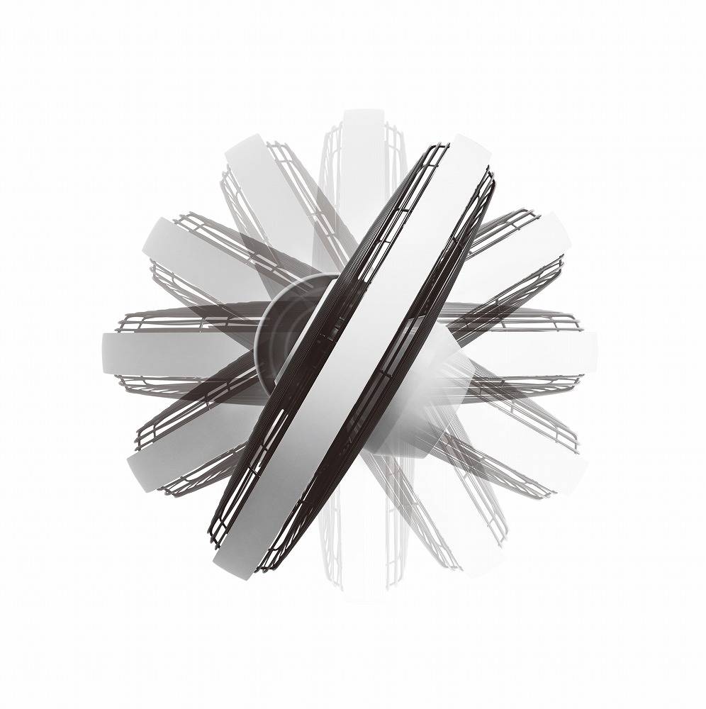 独自設計の羽根は、流体力学を応用したもので、DCモーターとの組み合わせにより自然なやさしい風を生み出す。またヘッドもスリムでコンパクトだ。