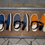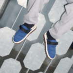 現在のモデルでも、独創性はやはり「BEATNIK」のアイデンティティ。「BEATNIK "QUILTED CANVAS"」のアッパー部分は、つま先から履き口にかけて縦方向に縫われたセンターシームデザインになっています。サメの歯のようなシャークソールも目を引きますね。加えてベルクロ(面ファスナー)のストラップで、フィット感の調整もできます。