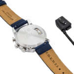 見た目は時分針のみの至ってシンプルな“アナログ時計”。なんですが、文字盤の余白部分が96×39ピクセルのデジタルディスプレイとなっており、ここにスマートウォッチならではのさまざまな機能を表示します。