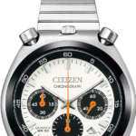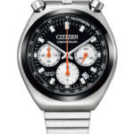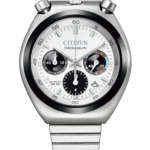 ケース素材はステンレスで、サイズは38mm径×厚み11.7mm、5気圧防水を搭載。風防は球面クリスタルガラス、時分針とインデックスに夜光塗料が塗布されています。ムーブメントはオリジナルモデルの機械式から電池式クォーツ(Cal.0510)に変更。表示機能は1/1秒クロノグラフ(12時間計)と日付、秒針停止機能と日付早修正機能を備えています。