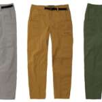 いずれのアイテムも大きめポケットを複数装備するので、スマホや財布、車のキーはもちろん、グローブや火吹き棒など焚き火周りのアイテムを直接身につけられるのも便利。いずれもカラーはダブ、 スモークカーキ、 イエローストーンの3色で、サイズはS/M/L/XLの4種類を展開します。