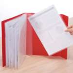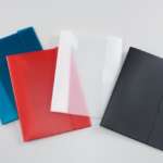 カラーは中身がうっすら見えるクリアータイプの赤、水色、透明と、中身が見えない黒の4色展開。 黒は中身が見えない不透明素材を採用しているので、機密書類の収納や外出時の持ち運びにも適しています。A4サイズで、6枚収納(550円)と12枚収納(726円)の2種類展開です。