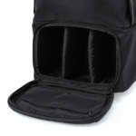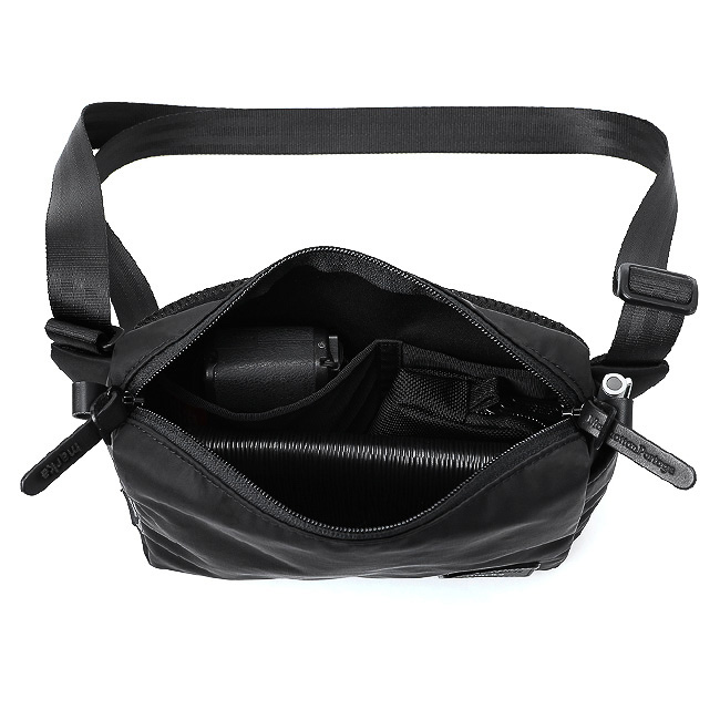 身体と接する背面側には、収納したアイテムを守る衝撃パッドを配備。開口部は2つのジッパーで右掛け・左掛けを問わずスムーズな開閉が可能です。