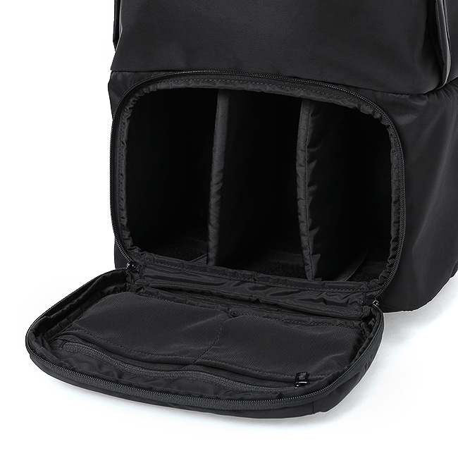 背面側にPC専用のコンパートメント、本体底面には三脚やスタビライザーの取り付けが可能なループを装備するなど、抜群の収納性を備えています。