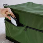 メイン荷室には3辺を閉じるファスナー式のフタが備わり、全開にしてもフタ部が地面に着かないサイズ設計。また、ボックス側面の片側には4つのオープンポケット、反対側にはファスナーポケット2つを備え、小物類を分類して収められます。