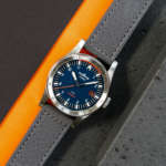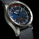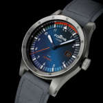 秒針や12時位置±5秒の位置にデザインされた“シンクロライン”と呼ばれる軌道調整ユニットはブルーとの対比となるオレンジがアクセント。パイロット・ツールとしての立ち位置ならではのチームメイトとの連携時に活躍するユニットとなっています。