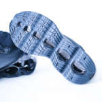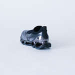 未来感のある半透明のアッパー部分にも透過性のある樹脂を採用し、ミズノの黒いランバードロゴを配置しています。かかとの部分にはメタリックブラックのパーツを使用。ソールの内側には空山基デザインの証である「SORAYAMA」ロゴが刻み込まれています。