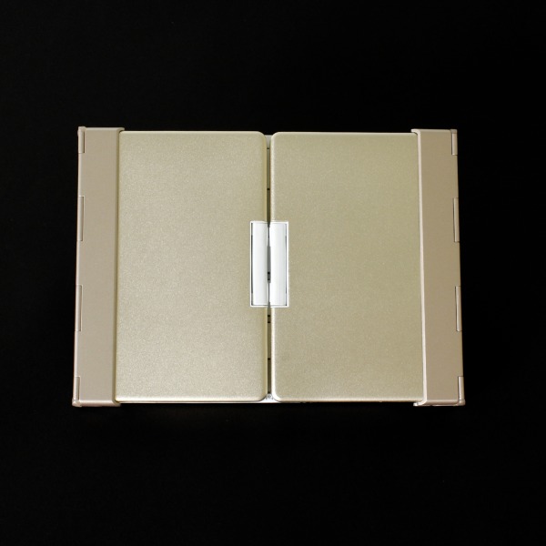 折りたたみ時のサイズは約120mm×165mm、厚さはわずか約14mmと、手帳ほどの大きさなので、小さなバッグにも入り、かさばらずに持ち運びできる。ボディはアルミ素材使用で高級感がある。