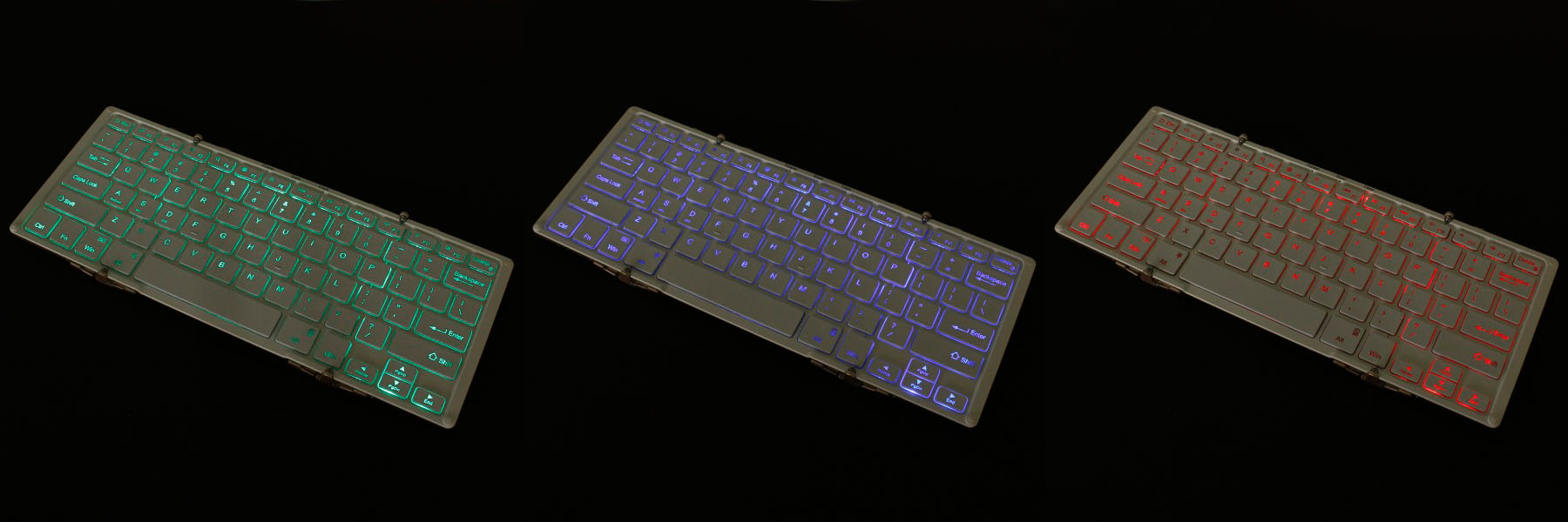 「LEDライト搭載 三つ折りBluetoothキーボード」