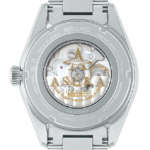 さらに、シースルーバックの裏ぶたには、ゴールドカラーで、「A」の文字と日本最大の鳥「アルバトロス」を組み合わせた飛鳥クルーズのロゴを配置。風防には、内面無反射コーティングを施したデュアルカーブサファイアガラスを採用し、高い視認性を備えています。
