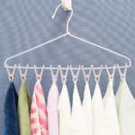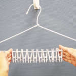 洗濯物を取り込む際の小さな不満を解消できる「洗濯物が一度に外せるピンチハンガー 10ピンチ付」。実はこのハンガー、ピンチ同士が押し合うことで先端が開き、洗濯物が落ちる仕組みです。