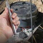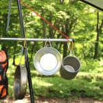 料理が終わった後、洗った食器やクッカーの置き場にも困るもの。このハンガーに掛けておけば清潔に水切りができます。