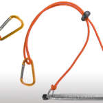 コードはオレンジ、カラビナはゴールドと、屋外でも目立ちやすい色なのも、小物が行方不明になりがちなキャンプ場ではうれしいですね。ひとつで何役もこなすコンパクトなハンガー、かなり活躍しそうなアイテムです。