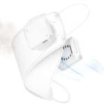 普段使っているマスクにクリップのように挟み込むだけで装着完了。W42.5×H42.5mmという極小サイズで、重さはわずか40g。付けていても重さをあまり感じず、快適さをキープ。