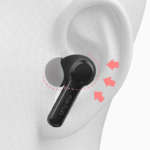 周囲の音を聞きたいときは、イヤホン本体をタップするだけで外音取込モードにさっと切り替え。これなら、イヤホンを着用したままでも駅や空港のアナウンスを聞き逃がすこともありません。また音量の上下や音楽の再生・一時停止などの操作もタップで可能です。