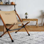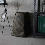 またキャンパス地とウッディなフレームが素朴なロータイプのポールチェア「POLE LOW CHAIR」(1万8700円)は、家具メーカーの弘益が提案するアウトドアブランド・Hang Outとのコラボレーション。座面にさりげなくプリントした“GEAR MISSION”のロゴが効いてます。いずれもストーブと合わせてチョイスできるよう、オリーブグリーン、コヨーテブラウンの2色を用意。