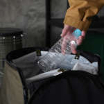 内側にレジ袋などを固定できるスナップボタンを備えることでダストボックスとしても使用できるようになっています。