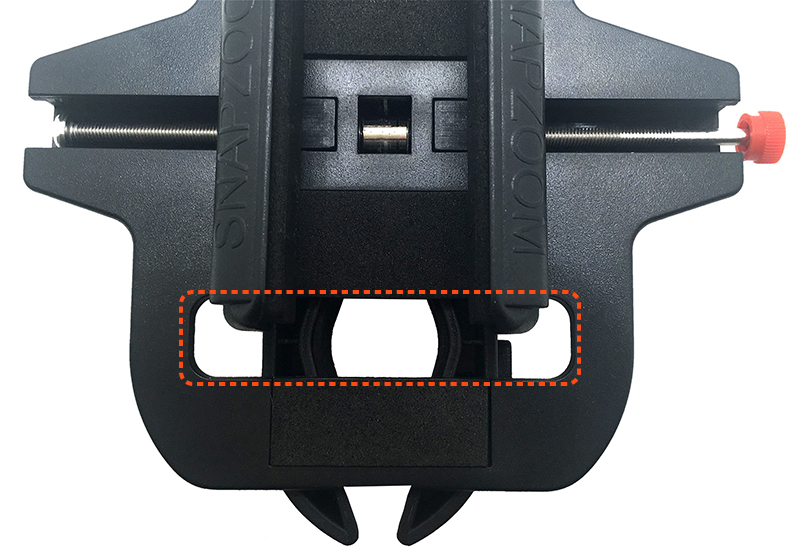 まず、これまでカメラレンズが端の方についているスマホには付属のゴムパッドを使用して取り付ける必要があったが、「SNAPZOOM II」では、カメラレンズ穴を広げることによりゴムパッドを使わずに取り付けられるようになった。