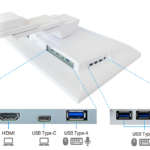 また、本体にはUSB Type-Cのほか、4つのUSB Type-Aポート、Displayポート、HDMIポート、ステレオミニジャックが設けられていて、キーボードやマウスなどの周辺機器を接続してドッキングステーションの代わりのようにも使えます。無料の専用ソフトウェアを使えば、各ウィンドウをきれいに配置できる「画面分割」機能も使え、作業効率がますますアップします。