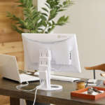 スタンドは、縦回転に加えて左右に344度、傾斜も前に5度・後ろに35度動かすことができ、画面位置調整もラクラク。昇降範囲も182.2mmと広く、ノートPCの上に設置したり横に設置したりと好きな場所に固定できます。横幅531mm×奥行き230mmで設置スペースも取りません。