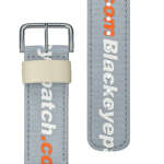 裏蓋には「BlackEyePatch」のロゴを刻印。シンプルな樹脂バンドに加え、グレーにホワイトとオレンジで「Blackeyepatch.com」のグラフィックをデザインした特別仕様のクロスバンドも同梱しています。