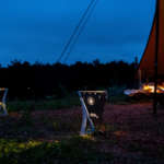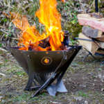 「B-I」は全体を覆わないスタイルが特徴です。SUS棒(ゴトク棒)を差し込めば、薪をくべたり、コーヒーポットや鉄板を置いたりして料理と焚き火を同時に楽しむことが可能。SUS棒はテコの原理により、一定の荷重に耐えられます。棒を差し込む穴には串も通せるため、串焼きも楽しめます。