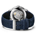 シースルーバックの裏ぶたからはブランドロゴを刻印されたローターや、ムーブメントの装飾を覗く楽しみも。個性あふれる素材使いにあわせた、ヌバック素材のベルトの質感も暖かな雰囲気を添えます。