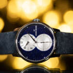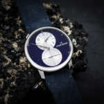 ダイアルの鮮やかな色と質感を生かすべく、インデックスや針のデザインはシンプルかつ控えめにまたダイアル下層部分の時間・秒のカウンターは渦巻き状の装飾を施すことで、シャープなアクセントを添えています。
