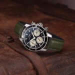 ラグ幅20mmのベルトは標準装備となるダークグリーンのワイルドボアレザーストラップに加え、ブラックの型押しカウレザーストラップが付属。さらに布製の60周年記念パッチ、ベルト交換工具、予備のバネ棒が特製ボックスに同梱されます。