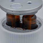 続いては“香”。本体に入眠用と起床用のアロマオイル2種類をセットすることで、入眠時はリラックスへと導く香りが、また起床時は心と身体をポジティブな気分に誘う香りが放出されます。