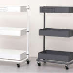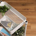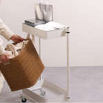 もちろんキャスター付きなので、どこへでも運べて使い方も自由自在。キッチンはもちろん、リビングやランドリー、寝室などあらゆるシーンで活躍。キャスターにはロック機構が付いているので固定もできます。
