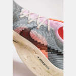 アッパーを構成するフライプリントやフライニットには「ズーム エア ポッド」の生産過程で発生した廃棄物や素材を活用。また、超厚底のミッドソールはナイキシューズに用いられている”ズームXフォーム”の小さなかけらが見えるデザインを採用しています。