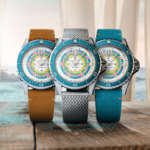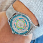 一方回転式ベゼルにはターコイズブルーをまとわせることで、爽やかな中にもニュアンスの効いたヴィンテージ感を醸し出します。
