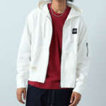 「MA-1」の袖にあるシガレットポケットを配したフルジップパーカー「FULL ZIP PARKA」(7700円)は、コットン100%の裏毛を使用した動きやすく着心地の高い着回ししやすい1着です。