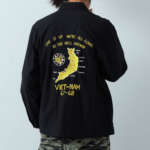 前面はシンプルな無地でありながら、背中にはベトナムの地図の刺繍というインパクトある一着。