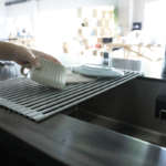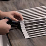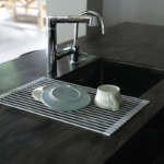 しかも、シリコン製なのでシンクや食器に触れた時に音がしにくく、使いたい時だけクルクル広げられ、使わない時は丸めれば幅が5cmほどに。滑りにくいのもうれしいポイントです。見た目もシンプルなのでどんなキッチンにもしっくり馴染み、生活感を出したくないミニマリストにもおススメです。