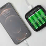 そして、特に便利なのが充電済みの電池を入れてケーブルでスマホとつなぐことで、スマホにも給電できること。充電池はニッケル水素・リチウムイオンともに単三形乾電池4本を使用し、5V1Aの出力でiPhone純正充電プラグと同じスピードでスマホの充電ができます。