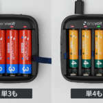 さらに、同社が発売する1.5V単三形リチウムイオン充電池の充電もできるうえ、1.5Vのハイパワーを誇り500回繰り返し使える人気の充電池です。