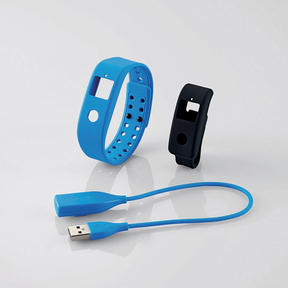 もちろん時刻も表示できるのでリストウォッチとしても使用できる。肌触りの良いTPU素材のリストバンドと、ベルトやポケット、またはペンダントトップとして装着できるクリップが付属されている。リストバンドは黒と青の2色。シーンに合わせて自由に付け替えが可能だ。