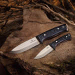 全長220mm、ブレード100mmの「アウトドアマスターL」は、バトニングに最適。一方、全長155mmでブレード70mmの「アウトドアマスターS」は小回りが効くので、食材をカットしたりロープを切ったり、フェザースティックを作ったりといった、ブッシュクラフトでの幅広いシーンに活躍します。