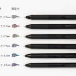 ペン本体はシンプルでマットな質感を持つオールブラックボディで、シックで洗練されたデザイン。ボール径のサイズは0.5mmと0.7mmの2種類。色の違いはエナージェルのロゴ部分でわかるようになっています。
