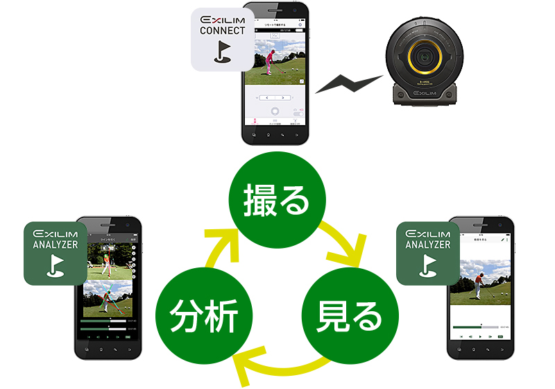 1秒間に240コマのハイスピードムービーで、肉眼では捉えきれない一瞬の動きを超スローモーションで撮影してくれます。そんな実力派デジカメと撮影スマホアプリ、分析スマホアプリがタッグを組んで、あなたのスイングを分析してくれるんです。